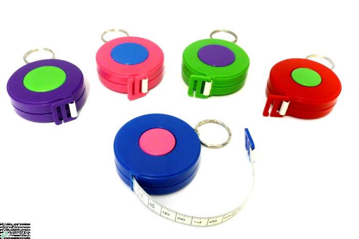 Basic rolcentimeter als hulpmiddel bij breien of haken in verschillende vrolijke kleurtjes. Met 150 cm op beiden zijden (ook in inch) inclusief bevestigingsring.
