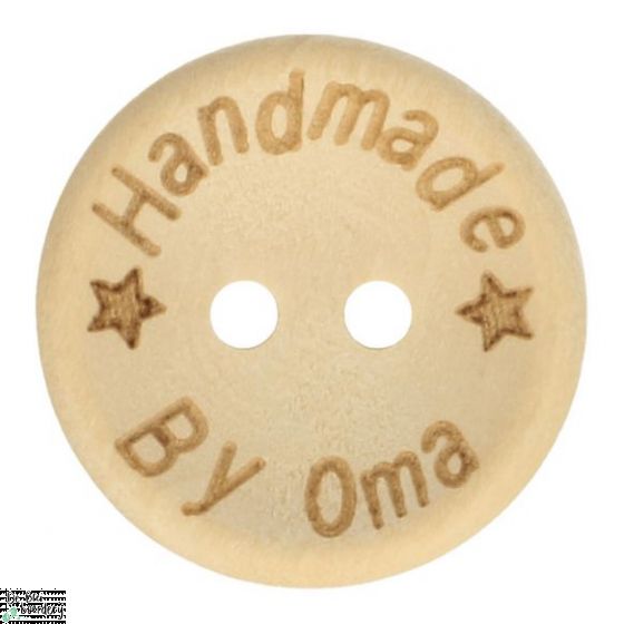 Houten knoop - Handmade by oma - 15 mm - per stuk
