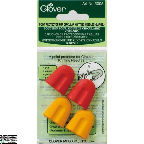 Clover naaldpunt beschermers zet je om de punten van de rondbreinaalden als je het breiwerk in je tas stopt. Zo beschadigen de punten van de naalden niet, blijft je breiwerk op je naalden zitten en kun je niemand ongewenst prikken.