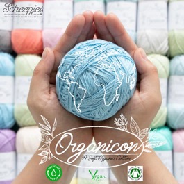 Scheepjes Organicon is een 100% biologisch katoen, geschikt voor het maken van kleding, woonaccessoires en het haken van knuffels en ander baby-speelgoed.
